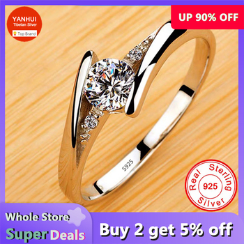 白チベットシルバーリング女性のための、ラウンドジルコンクリスタル、ないフェード、花嫁約束、婚約、ウェディングバンド、宝石類のギフト