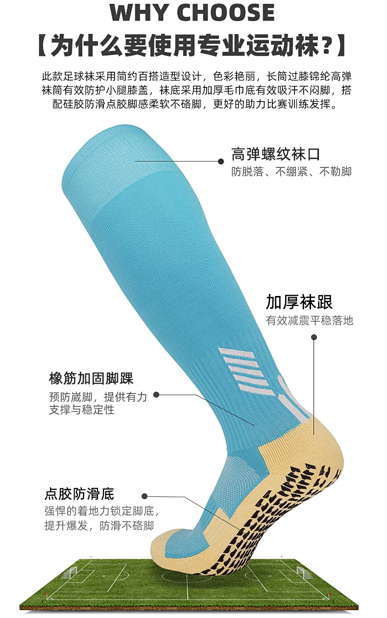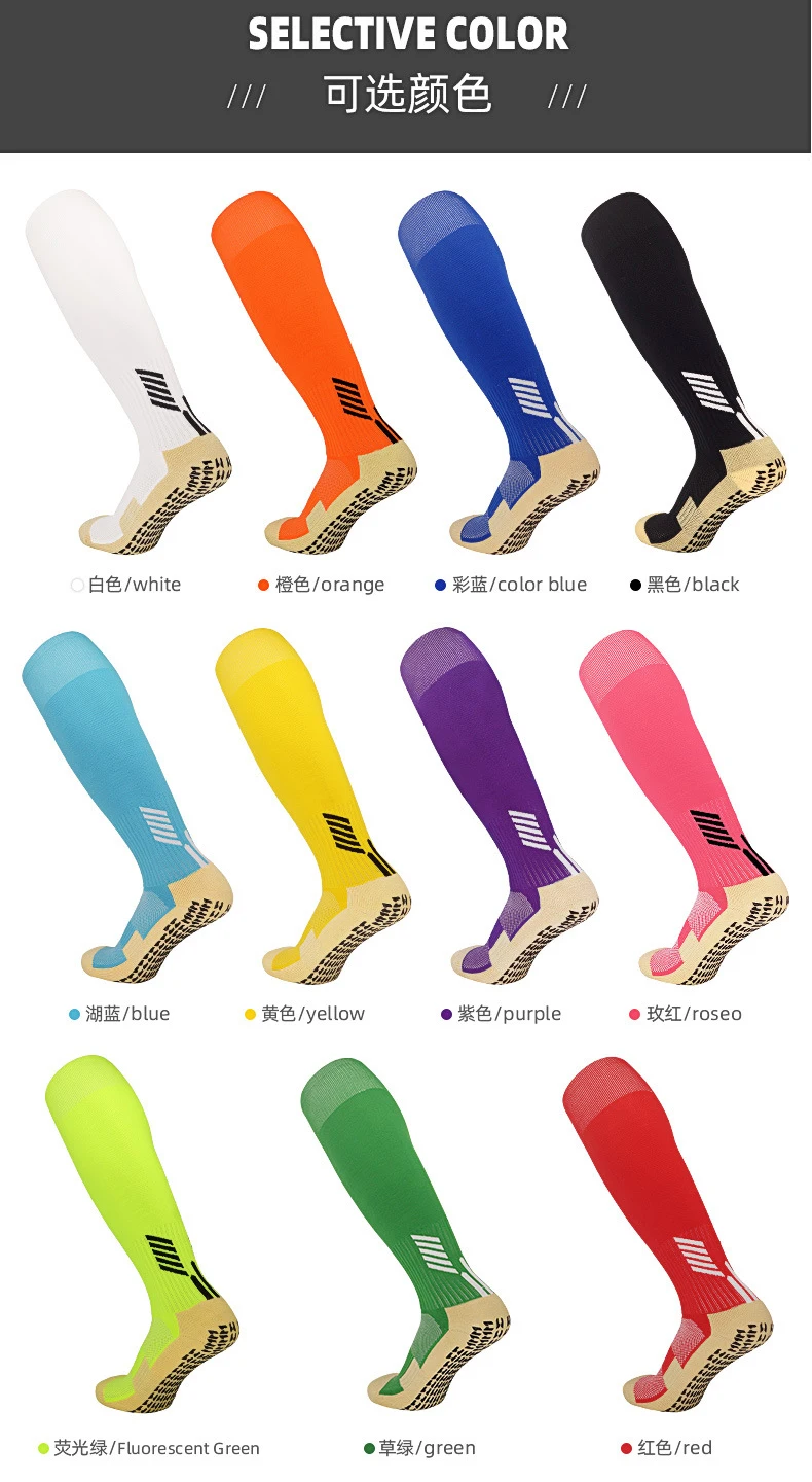 サッカーやサッカーなどのスポーツ用の滑り止めソックス。11色で利用可能